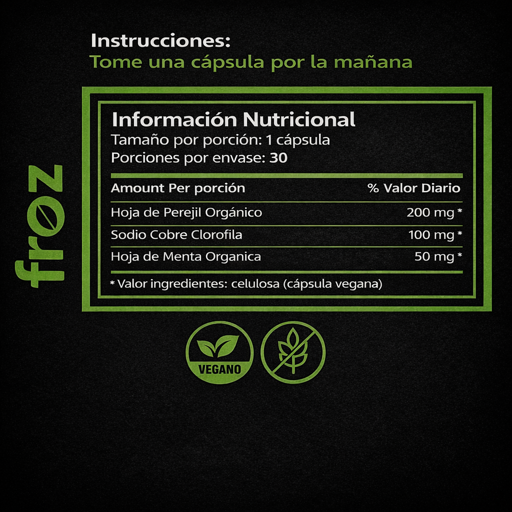 La clorofila actúa como un poderoso limpiador holístico, purificando las toxinas que causan los olores corporales.